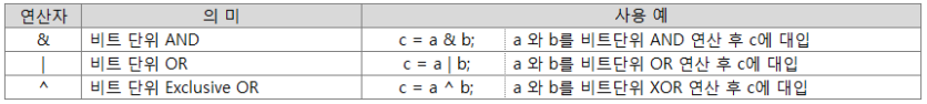 정수형 자료의 내부 2진수 값을 대상으로 논리 연산을 수행하는 이항 연산자이다.