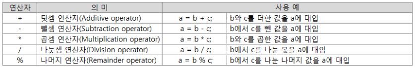 일반적인 산술 연산을 지시하는 연산자로서, 연산을 수행하기 위해 두개의 항(오퍼랜드)이 필요하므로 이항 연산자라 한다.